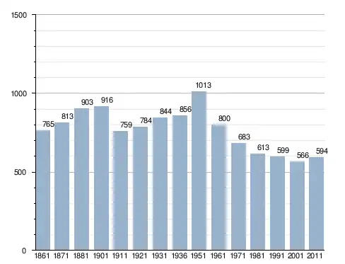 في سنة 1861 بلغ عدد السكان 765 نسمة، وتطور العدد ليصل في سنة 2011 لـ 594 نسمة.