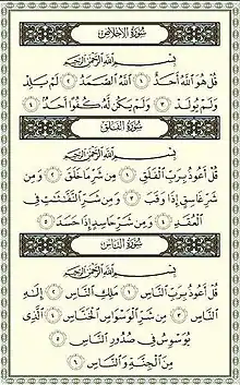 |CitationClass=تم تجاهله (مساعدة) - "مشروعية وعدد قراءة المعوذات دبر الصلوات والصباح والمساء، إسلام ويب، مركز الفتوى". www.islamweb.net. مؤرشف من الأصل في 27 فبراير 2019. اطلع عليه بتاريخ 13 فبراير 2021. الوسيط