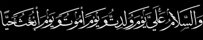 وَسَلَامٌ عَلَيْهِ يَوْمَ وُلِدَ وَيَوْمَ يَمُوتُ وَيَوْمَ يُبْعَثُ حَيًّا