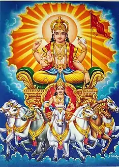 سوريا सूर्य أي النور الأعلى وذلك بحسب المعتقد الهندوسي وهو إله شمسي رئيسي وابن كاسيابا وزوج أديتي، وعادة ما يشير للشمس في الهند ونيبال.[1][2][3][4][5]