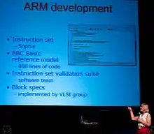 في 1983 صممت مجموعة التعليمات لأحد معالجي مجموعة تعليمات الحوسبة المخفضة, (the Acorn RISC Machine (ARM لتصبح في وقت لاحق أحد أكثر IP-cores نجاحا (أي نواة وحدة المعالجة المركزية المرخصة) في التسعينيات والألفينيات.