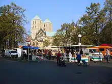 تنظم عمل الأسواق الأسبوعية في الدول الأوروبية قوانين وتخصص لها أماكن في منتصف المدن (في الصورة بجوار كاتدرائية مونستر) وتكون مخصصة للمشاة [الإنجليزية] وتحدد مكاتب التخطيط البلدية نمط وطبع أكشاك البيع.