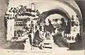 بطاقة بريدية قديمة تظهر متجر الفخار