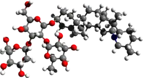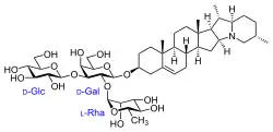 (2S,3R,4S,5S,6R)-2-(((2R,3S,4S,5R,6R)-3-hydroxy-2-(hydroxymethyl)-5-(((2R,3R,4R,5R,6S)-3,4,5-trihydroxy-6-methyltetrahydro-2H-pyran-2-yl)oxy)-6-(((4S,6aR,6bS,8aS,8bR,9S,9aR,14aS,15aS,15bS)-6a,8a,9-trimethyl-3,4,5,6,6a,6b,7,8,8a,8b,9,9a,10,11,12,13,14a,15,15a,15b-icosahydro-1H-naphtho[2',1':4,5]indeno[1,2-b]indolizin-4-yl)oxy)tetrahydro-2H-pyran-4-yl)oxy)-6-(hydroxymethyl)tetrahydro-2H-pyran-3,4,5-triol | |