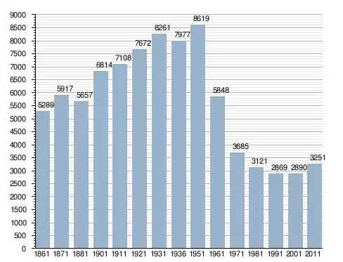 في سنة 1861 بلغ عدد السكان 5٬289 نسمة، وتطور العدد ليصل في سنة 2011 لـ 3٬251 نسمة.