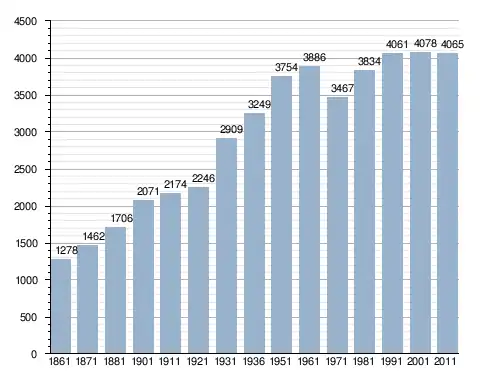 في سنة 1861 بلغ عدد السكان 1٬278 نسمة، وتطور العدد ليصل في سنة 2011 لـ 4٬065 نسمة.