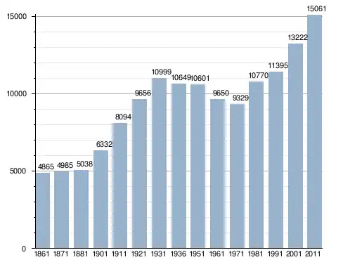 في سنة 1861 بلغ عدد السكان 4٬865 نسمة، وتطور العدد ليصل في سنة 2011 لـ 15٬061 نسمة.