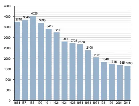 في سنة 1861 بلغ عدد السكان 3٬740 نسمة، وتطور العدد ليصل في سنة 2011 لـ 1٬660 نسمة.