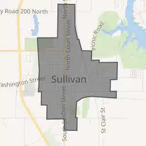 - "صفحة سوليفان (إنديانا) في خريطة الشارع المفتوحة". OpenStreetMap. اطلع عليه بتاريخ 6 مارس 2021. الوسيط