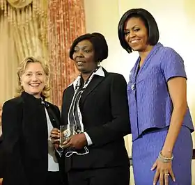 - "Secretary Clinton With First Lady Michelle Obama and Honoree Sonia Pierre of the Dominican Republic". United States Department of State. March 3, 2010. مؤرشف من الأصل في 08 ديسمبر 2019. اطلع عليه بتاريخ 07 أغسطس 2010. الوسيط