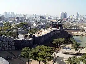 ![]() قلعة هواسونغ and the skyline of Suwon | |