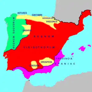 في حين أن الوندال والألانيين تصادموا مع الفرنكيين حلفاء روما للسيطرة على بلاد الغال، توجه سويبيو الملك هرميريكوس جنوبًا وعابروا جبال البرانس وبلاد الباسك متوغلين في إسبانيا التي كانت خارج سيطرة الإمبراطورية منذ تمرد ماكسيموس وجيرونتيوس في سنة 409 فدمرت المقاطعات الجنوبية والغربية لمدة سنتين.