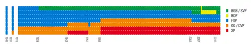 في عام 1971 حصلت المرأة السويسرية على حق التصويت، بينما رفض الناخبون السويسريون عام 1992 الانضمام إلى المنطقة الاقتصادية الأوروبية، ولم تنضم سويسرا إلى عضوية الأمم المتحدة إلا في عام 2002.[65] رسَّخ الدستور الفدرالي الأول الصادر عام 1848 والمعدل تعديلا جِـذريا عام 1874، الهياكل السياسية لسويسرا، واعتنى بتحديد سلطة الحكومة المركزية وحكومات الكانتونات والفصل بينها. كما ضمن الدستور السويسري ممارسة الحقوق السياسية على أساس نظام حُكم جمهوري ذو ديمقراطية مباشرة، يمنح السيادة أو السلطة السياسية العليا للشعب، من خلال قيامه بانتخاب ممثليه ومشاركته المباشرة في سَنِّ القوانين عن طريق الاستفتاءات، إذ يمكن إجراء استفتاء على تغيير مادة دستورية من خلال جمع تواقيع مائة ألف ناخب. أمّا القوانين فتتطلّب تواقيع خمسين ألف ناخب أو موافقة ثمانِ ولايات. والشعب هو صاحب الحق في انتخاب البرلمان، الذي ينتخِب بدوره أعضاء المجلس الفدرالي (الحكومة) المكوّن من سبعة أعضاء، ومدّته أربع سنوات. وتتألف السلطة التشريعية (البرلمان) من غرفتين لهما نفس الصلاحيات، ومدة كل منهما أربع سنوات. مجلس الشيوخ يضم ممثلي الكانتونات، ويتكون من 46 عضوا. ومجلس النواب يتكون من 200 عضو يمثلون الأحزاب وِفقا لرصيد كل حزب من أصوات الناخبين.[65][70]
