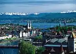 سويسرا هي أيضاً مهد للصليب الأحمر؛ وموطن لعدد كبير من المنظمات الدولية؛ بما في ذلك ثاني أكبر مكتب للأمم المتحدة. وعلى المستوى الأوروبي فهي عضو مؤسس في الرابطة الأوروبية للتجارة الحرة؛ وجزء من منطقة شنغن، وعلى الرغم من أنها ليست عضوًا في الاتحاد الأوروبي ولا في المنطقة الاقتصادية الأوروبية إلا أن سويسرا هي واحدة من أغنى البلدان في العالم من حيث الناتج المحلي الإجمالي للفرد، وتحتوي على أعلى ثروة للشخص البالغ (الأصول المالية وغير المالية) من أي بلد في العالم.[34][35] وقد صُنفت زيورخ وجنيف المدينتين الثانية والثامنة من بين الأعلى في جودة المعيشة في الحياة في العالم.[36] وهي الدولة التاسعة عشر كأكبر اقتصاد في العالم من حيث الناتج المحلي الإجمالي الاسمي ورقم 36 في تعادل القوة الشرائية.