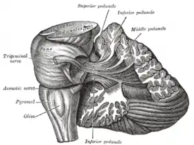 تشريح عميق لجذع الدماغ. منظر وحشي.