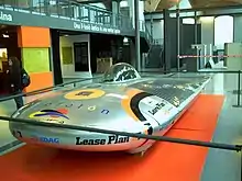 السيارة الشمسية عبارة عن مركبة مزودة بألواح شمسية على سطحها تقوم باستقبال أشعة الشمس وتحويلها إلى طاقة كهربائية. تمر هذه الطاقة خلال دوائر تحكم وتنظيم للتيار الكهربائي بما يناسب المحرك أو المحركات التي تدير عجلات هذه العربة، مع الاهتمام أثناء تصميم مثل هذه العربة بمراعاة عدة أمور منها خفة الوزن والمتانة والاعتمادية في اختيار المواد المكونة لمثل هذه العربة. وهذه العربة تعتمد على الشمس فقط في إدارة محركها لذلك تسمي السيارة الشمسية.[1][2][3][4]