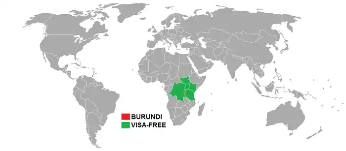 يمكن للمواطنين من جميع البلاد الحصول علي التأشيرة عند قدومهم عن طريق مطار بوجومبورا الدولي.[1]