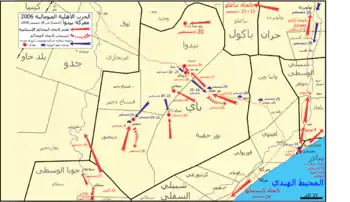 وخلال الفترة التي اندلعت فيها المعارك مجددا بداية من عام 2006 بقيت المحاكم الإسلامية بعيدة عن الأراضي المتاخمة للحدود الإثيوبية مما جعل هذه المناطق ملاذا للمدنيين الصومالين هربا من المعارك الضارية في شرق البلاد وكذلك الحكومة الفيدرالية الانتقالية نفسها والتي اتخذت من مدينة بيداوا مقرا وملاذا لها حتى أعلنت إثيوبيا صراحة عن عزمها التدخل عسكريا لحماية بيداوا في حالة تعرضها لأي تهديد عسكري من قبل ميليشيات المحاكم الإسلامية. وفي الخامس والعشرين من سبتمبر عام 2006 اندفعت ميليشيات المحاكم الإسلامية نحو ميناء كيسمايو أخر الموانئ الواقعة تحت سيطرة الحكومة الفيدرالية الانتقالية،[10] مما دفع إثيوبيا للدفاع عن عملائها والرد عسكريا باجتياح مدينة بيور هكبا والاستيلاء عليها في التاسع من أكتوبر عام 2006 مما اضطر المحاكم الإسلامية لإعلان الحرب على إثيوبيا في نفس اليوم.[11]