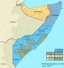 في أعقاب الحرب الأهلية وخلال عام 1998 أعلنت عشيرة "هارتي" من قبائل"دارود" عن قيام دولة منفصلة ذات حكم ذاتي في الشمال الشرقي للصومال أطلقوا عليها اسم أرض البونت (بالصومالية: Puntlaand) إلا أنها أعلنت استعدادها للمشاركة في وضع دستور جديد لتشكيل حكومة مركزية جديدة. أعقب ذلك في عام 2002 إعلان انفصال دولة "الصومال الجنوبية الغربية" وقيام الحكم الذاتي بها فوق مناطق بأي وباكول وجوبا الوسطى وجدو وشبيلا السفلى وجوبا السفلى والتي أصبحت جميعها تحت تصرف الدولة الناشئة وذلك على الرغم من المحرضين الأساسيين للانفصال، جيش الرحنوين الذي تأسس عام 1995، ولم يكن قد فرض سيطرته الكاملة إلا على بأي وباكول وأجزاء من جدو وجوبا الوسطى ومع ذلك سارع بإعلان انفصال تلك المناطق عن دولة الصومال وتأسيس دولة الصومال الجنوبية الغربية.