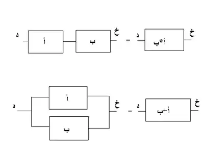إذا اعتبرنا د وخ مداخل ومخارج المنظومة وأ وب دالة التحويل النظام وإذا ربطنا النظم أ وب كما هو مبين في الصورة فإن دالة التحويل تصبح كما هو مبين أسفله.