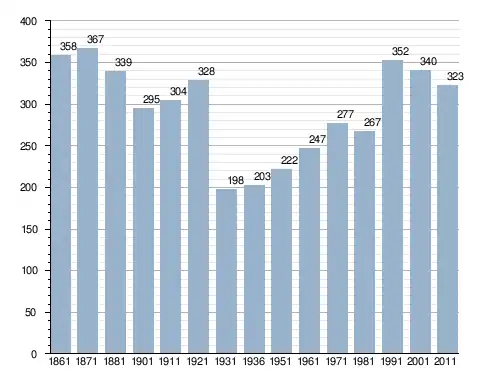 في سنة 1861 بلغ عدد السكان 358 نسمة، وتطور العدد ليصل في سنة 2011 لـ 323 نسمة.