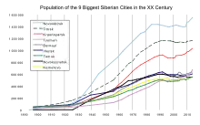 ونحو سبعين في المئة من الناس سيبيريا يعيشون في المدن. ويعيش كثير من الناس في المناطق الريفية. نوفوسيبيرسك أكبر مدن سيبريا يبلغ عدد سكانها 1.5 مليون نسمة. وتوبولسك، تومسك، تيومين، كراسنويارسك، إيركوتسك وأومسك هي المراكز التاريخية القديمة.