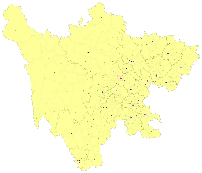 | التقسيمات الإدارية لسيشوان | |||||||||||