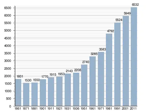 في سنة 1861 بلغ عدد السكان 1٬801 نسمة، وتطور العدد ليصل في سنة 2011 لـ 6٬532 نسمة.