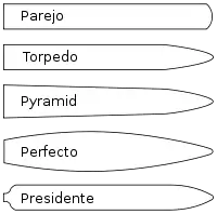 - توسكان: سيجار إيطالي طويل ورفيع وقاسي. سميك من الوسط وأضعف بنهاياته.