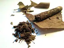 السيجار لفافة تبغ معدة بطريقة وعناية خاصة تستخدم فيها أوراق التبغ الكاملة والمخمرة فترطب وتعالج وتلف باليد من قبل أن عمال متخصصين بعملهم.