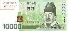 الملك العظيم سيجونغ هو عالم الآداب الوحيد الذي توضع صورته على العملة الكورية، حيث وضعت صورته على أكبر العملات .