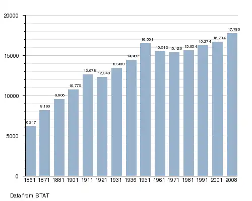 |CitationClass=تم تجاهله (مساعدة) - Superficie di Comuni Province e Regioni italiane al 9 ottobre 2011 — تاريخ الاطلاع: 16 مارس 2019 — الناشر: المعهد الوطني للإحصاء