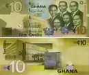 10 سيدي | 145 × 71 ملم | أصفر-أخضر | الستة الكبار، قوس الاستقلال | بنك غانا | 3 يوليو 2007 | ||