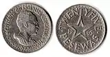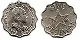 5 بيسة | كوامي نكروما(حروف: CIVITATIS GHANIENSIS CONDITOR) | نجمة خماسية، قيمة العملة