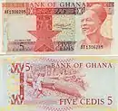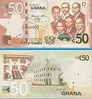 |CitationClass=تم تجاهله (مساعدة) - "Banknotes of Ghana". Bank of Ghana. مؤرشف من الأصل في January 5, 2015. اطلع عليه بتاريخ 21 ديسمبر 2014. الوسيط