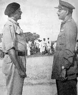 ![]() سيد أحمد العيدروس يُسلم الدولة لقائد الجيش الهندي بعد استسلام جيش دولة حيدر آباد | ||||