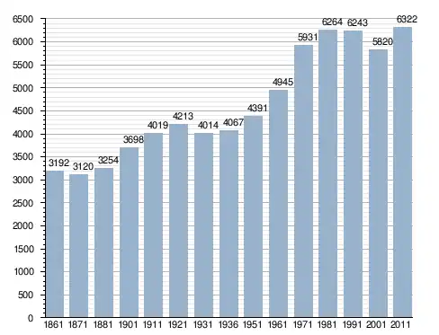 في سنة 1861 بلغ عدد السكان 3٬192 نسمة، وتطور العدد ليصل في سنة 2011 لـ 6٬322 نسمة.