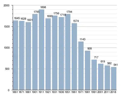 في سنة 1861 بلغ عدد السكان 1٬645 نسمة، وتطور العدد ليصل في سنة 2018 لـ 541 نسمة.