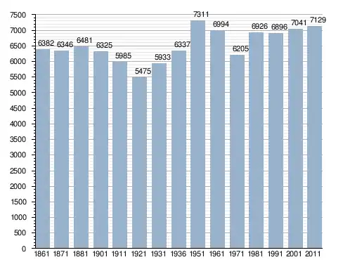 في سنة 1861 بلغ عدد السكان 6٬382 نسمة، وتطور العدد ليصل في سنة 2011 لـ 7٬129 نسمة.