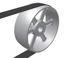 حزام مسطح :هو نظام بسيط لنقل الطاقة الكهربائية. ينقل الطاقة بسرعات عالية وبقوة (500 حصان إلى 10,000 قدم / بالدقيقة)، في حالات الأحزمة والبكرات واسعة كبيرة. هذه الأقراص هي ضخمة، مما يتطلب الضغط العالي مما يؤدي إلى أحمال عالية، لذلك تستخدم الأحزمة المخروطية بدلا من المسطحة.