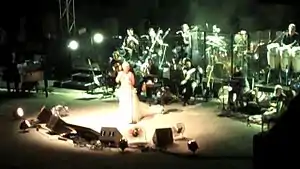 ![]() سيزين آكسو في حفلة موسيقية بالمسرح الجميل المكشوف بالكلية العسكرية (أغسطس 2011) | |