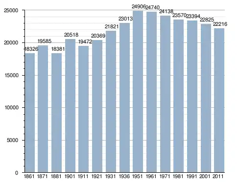 في سنة 1861 بلغ عدد السكان 18٬326 نسمة، وتطور العدد ليصل في سنة 2011 لـ 22٬216 نسمة.