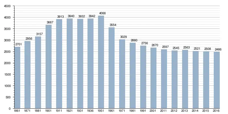في سنة 1861 بلغ عدد السكان 2٬701 نسمة، وتطور العدد ليصل في سنة 2017 لـ 2٬490 نسمة.