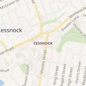 - Population statistics are based on the Cessnock urban centre, a Australian Standard Geographical Classification used by the Australian Bureau of Statistics which is slightly different from the actual town of Cessnock.