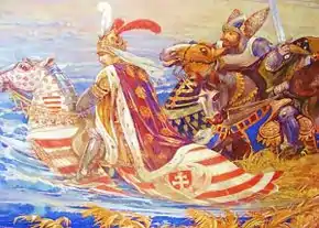 واحدة أو أكثر من الجمل السابقة تتضمن نصاً من منشور أصبح الآن في الملكية العامة: هيو تشيشولم, المحرر (1911). . موسوعة بريتانيكا (الطبعة الحادية عشر). مطبعة جامعة كامبريدج. الوسيط |CitationClass=تم تجاهله (مساعدة)CS1 maint: ref=harv (link) - Michaud, "The Kingdoms of Central Europe in the Fourteenth Century", p. 743.