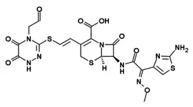 (6R,7R)-7-([(2Z)-2-(2-amino-1,3-thiazol-4-yl)-2-methoxyiminoacetyl]amino)-3-[(E)-2-([5,6-dioxo-4-(2-oxoethyl)-1H-1,2,4-triazin-[2] 3-yl]sulfanyl)ethenyl]-8-oxo-5-thia-1-azabicyclo[4.2.0]oct-2-ene-2-carboxylic acid[3]