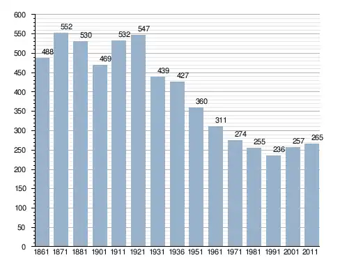 | 1861 | 1871 | 1881 | 1901 | 1911 | 1921 | 1931 | 1936 | 1951 | 1961 | 1971 | 1981 | 1991 | 2001 |