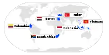 سيفيتس CIVETS (كولومبيا و إندونيسيا و فيتنام و مصر و تركيا و جنوب أفريقيا) هو اختصار للأسواق الناشئة صيغ في أواخر عام 2009 من قبل روبرت وارد، مدير التنبؤات العالمية في وحدة الاستخبارات الاقتصادية.[1][2][3] كما استخدم الرئيس التنفيذي لإتش إس بي سي مايكل جوجهيجان هذا المصطلح أيضاً. لهذه الدول مميزات مشتركة عدة، مثل اقتصادها الديناميكي المتنوع وتزايد عدد سكانها من الشباب.