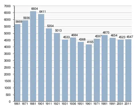 في سنة 1861 بلغ عدد السكان 5٬669 نسمة، وتطور العدد ليصل في سنة 2011 لـ 4٬547 نسمة.