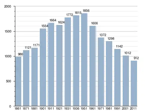 في سنة 1861 بلغ عدد السكان 986 نسمة، وتطور العدد ليصل في سنة 2011 لـ 912 نسمة.